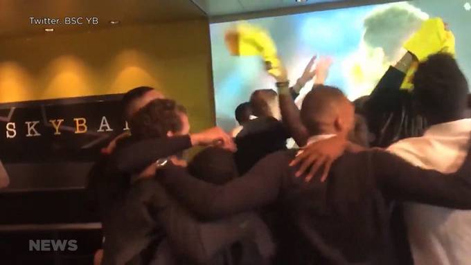 Sonntag, 14. April 2019YB-Meisterfeier: Fassnacht zündet Pyro an4 MinYB-Fans feuern ihren Meister in Zürich an5 MinYB wird Meister auf dem Sofa3 MinPromis gratulieren den Young Boys1 MinRonald McDonald-Stiftung feiert 25. Jubiläum3 MinSonntag, 14. April 2019 — Ganze Sendung16 MinPromis gratulieren den Young BoysSo 14. Apr. 2019, 18.00 UhrDie Siegesnacht war kurz, die Liste der Gratulanten dafür umso länger. Auch Prominente lassen sich den Gruss an die Meistermannschaft nicht entgehen.