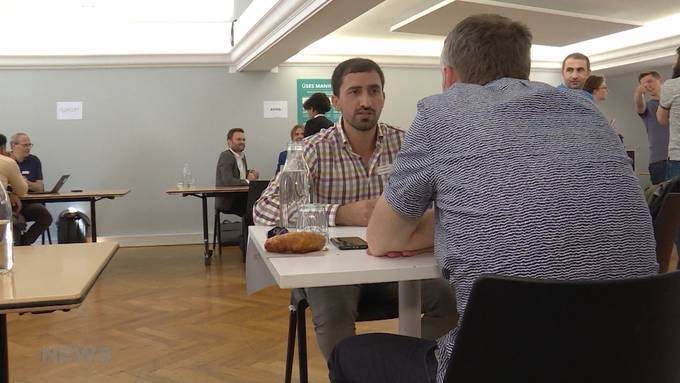 Speed-Dating mal anders: Anstatt dass sich zwei partnersuchende Menschen gegenüber sitzen, hocken Flüchtling und Post- oder Swisscom-Angestellter am Tisch. Innert 10 Minuten wird entschieden, ob eine Anstellung Sinn macht oder nicht.
