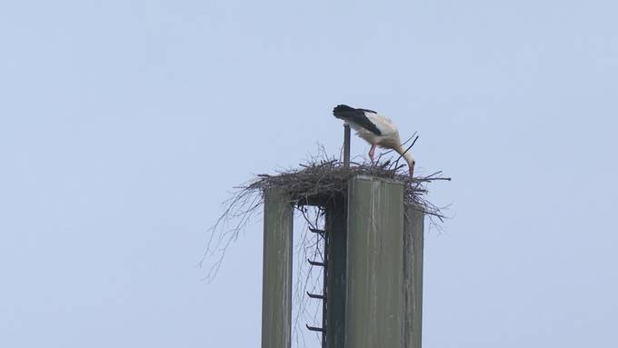 Störche sind zurück auf der Natelantenne in Roggwil